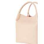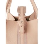 This small-sized Loro Piana Small Bale Bag Candoglia Marble features a cotton and leather shoulder strap that wraps around the structure, creating a distinctive loop motif. The handle and strap design allow for both hand and shoulder carrying options.
