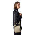 Measuring 17 x 17 x 21 cm (6.7″ x 6.7″ x 8.3″), with a handle length of 9 cm and a strap length of 54 cm, this bag is perfect for carrying essentials while maintaining an effortlessly chic look.