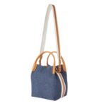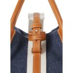 This sophisticated bag showcases a cotton and leather shoulder strap that wraps around the bag, creating a distinctive loop motif for a refined and structured look.
