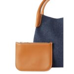 For added convenience, the bag features an inner fastening with a metal toggle, keeping belongings secure. A removable inner pouch, crafted in the same leather, is attached with a toggle for additional storage and organization.
