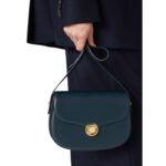This exquisite Loro Piana Small Ghiera Bag Anchor Blue features a metal ring clasp with a logo and metal rings attaching the strap, blending functionality with refined aesthetics.