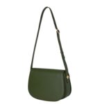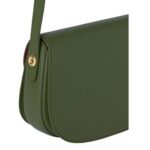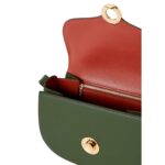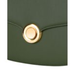 This exquisite Loro Piana Small Ghiera Bag Dark Lichen Green features a metal ring clasp with a logo and metal rings attaching the strap, blending functionality with refined aesthetics.