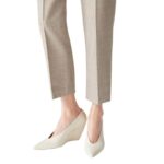 The 8 cm (3.1 in) wedge heel is covered in the same fabric as the upper, creating a seamless, sophisticated look with added stability.