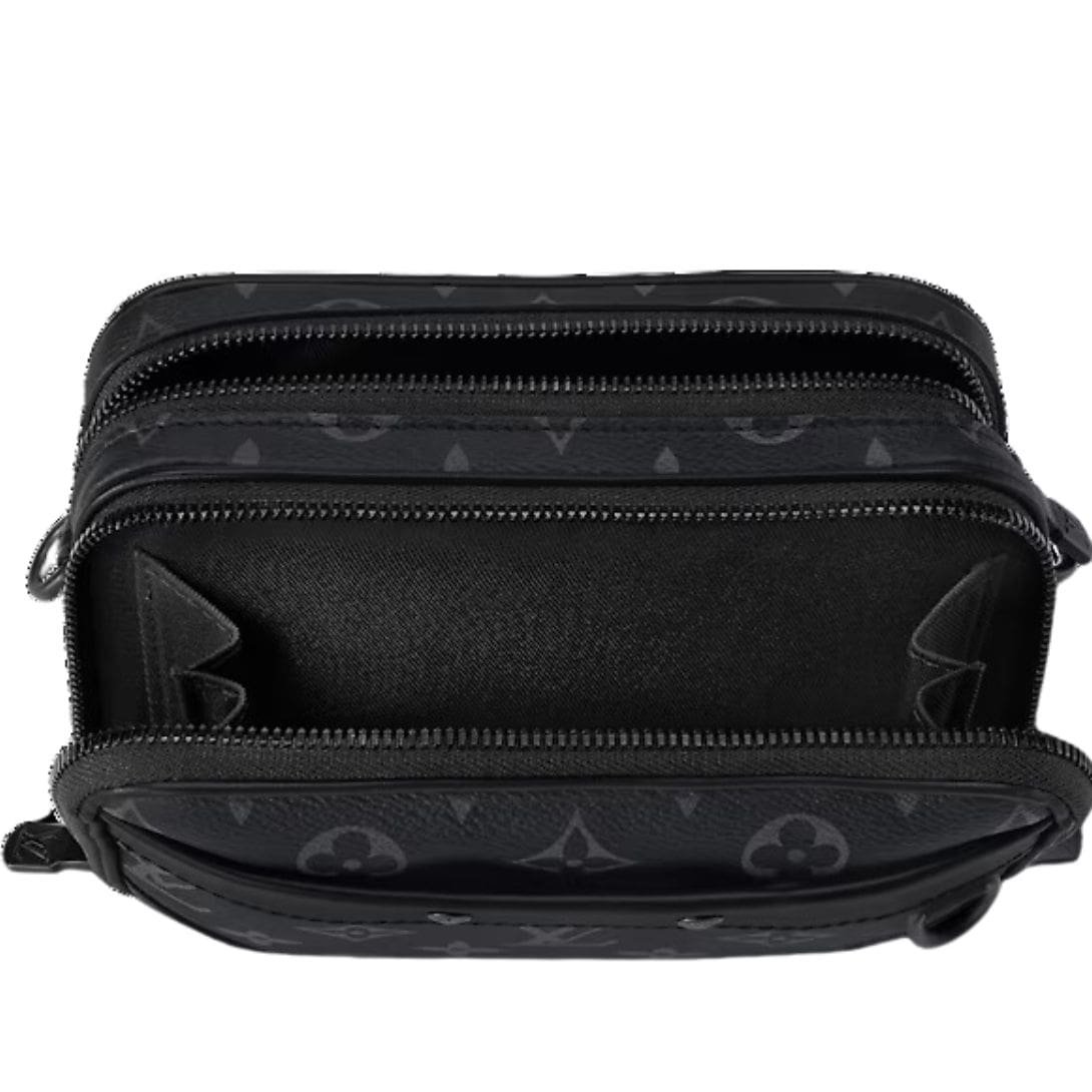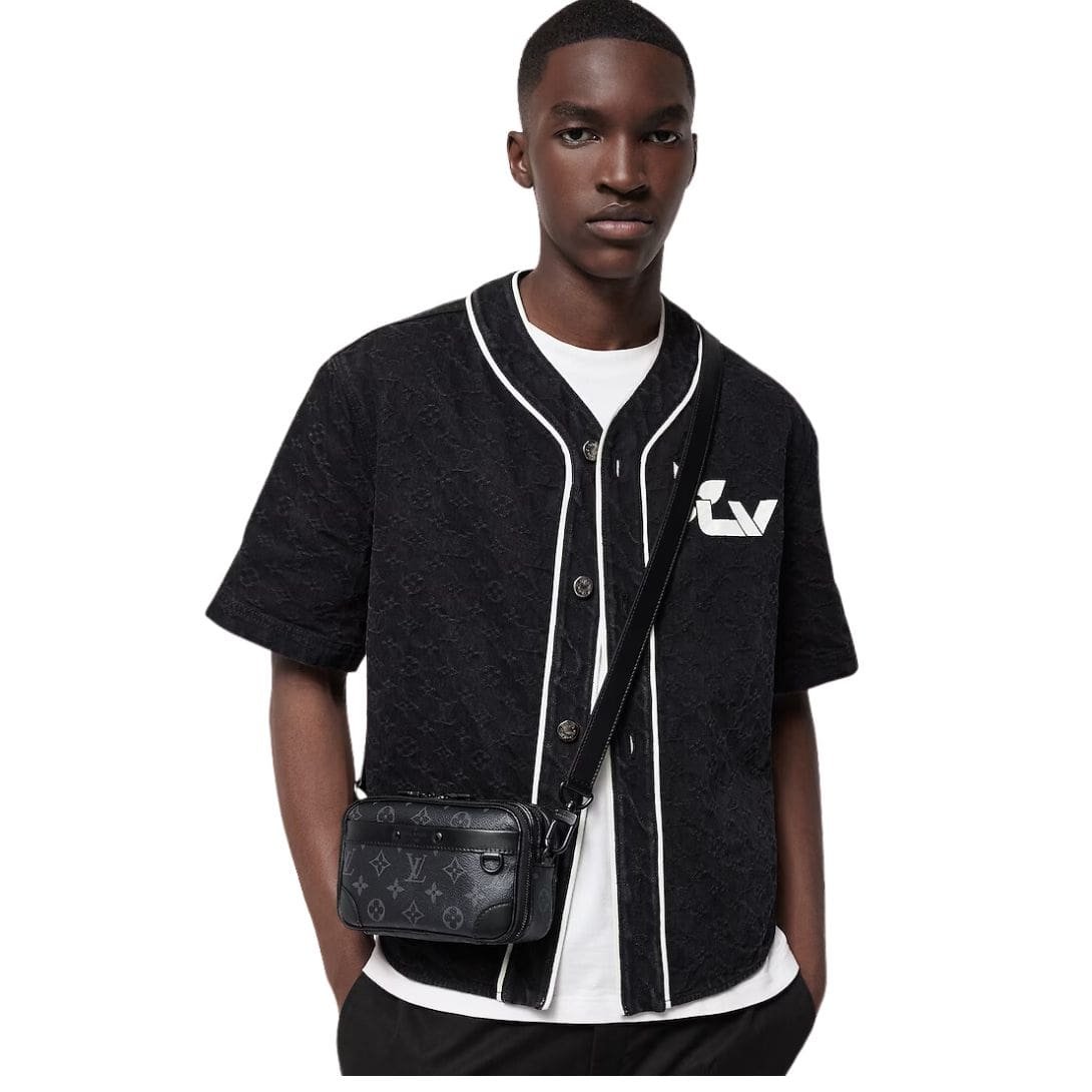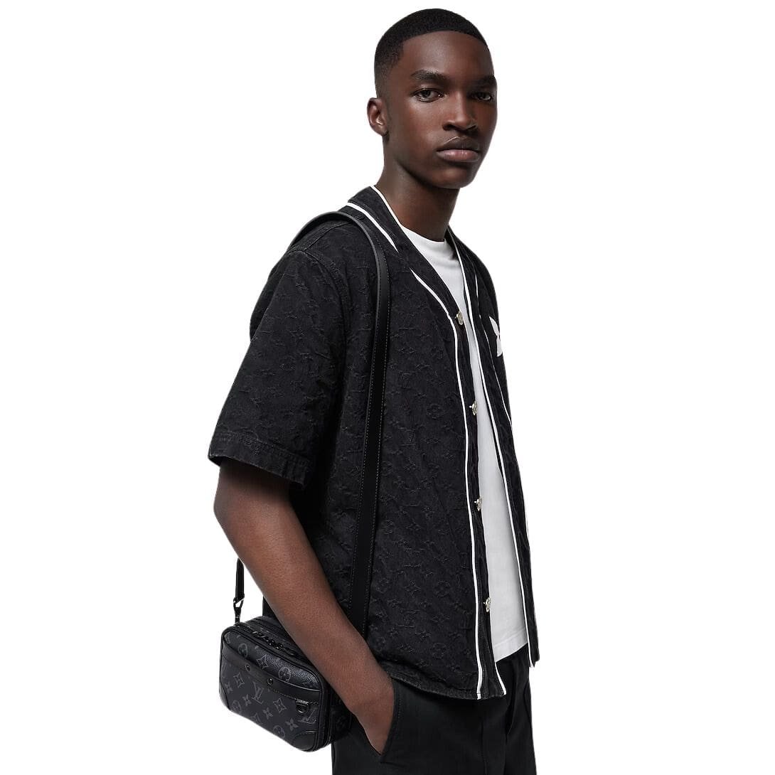 Crafted with meticulous attention to detail, the LOUIS VUITTON ALPHA WEARABLE WALLET boasts a refined finish with cowhide-leather trim and a luxurious cowhide-leather lining. The black-color hardware adds a sleek contrast, elevating its overall aesthetic appeal.