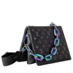 Embrace versatility with the LOUIS VUITTON COUSSIN PM removable chain, adorned with an exquisite iridescent finish that adds a touch of opulence to any look. Adjust the removable and adjustable strap to your desired length, offering a comfortable drop of 11.8 inches, extendable up to 19.7 inches, allowing you to wear it as a shoulder bag or crossbody for hands-free convenience.