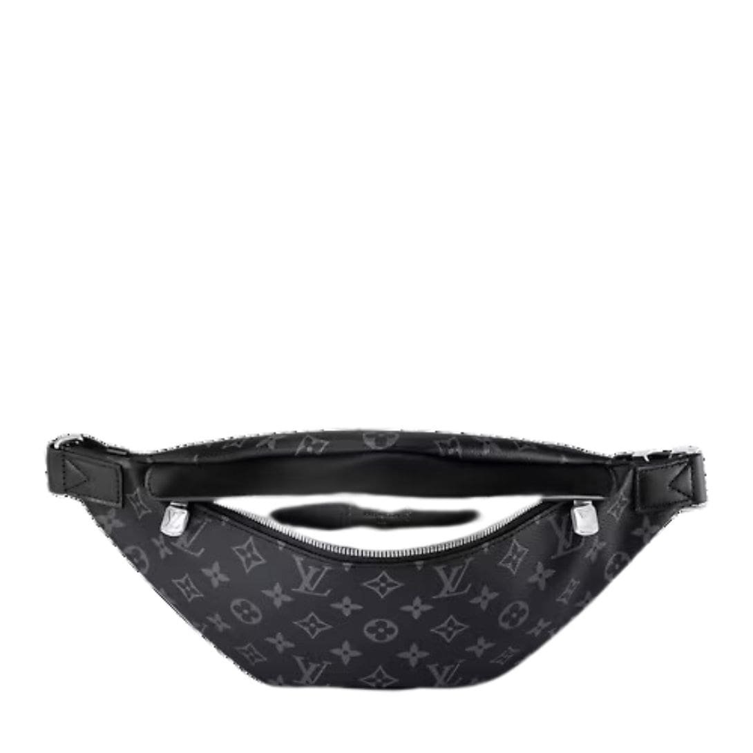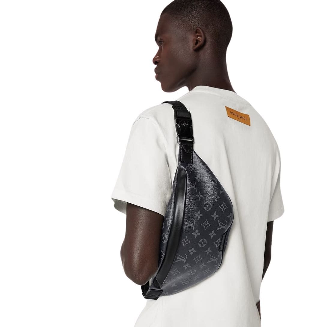 Introducing the LOUIS VUITTON DISCOVERY BUMBAG PM crafted from the sophisticated Monogram Eclipse canvas, blending casual chic with modern functionality seamlessly. This accessory embodies versatility with its body-friendly shape and adjustable belt, allowing it to be worn around the waist, over the shoulder, or stylishly slung across the chest for a contemporary look.