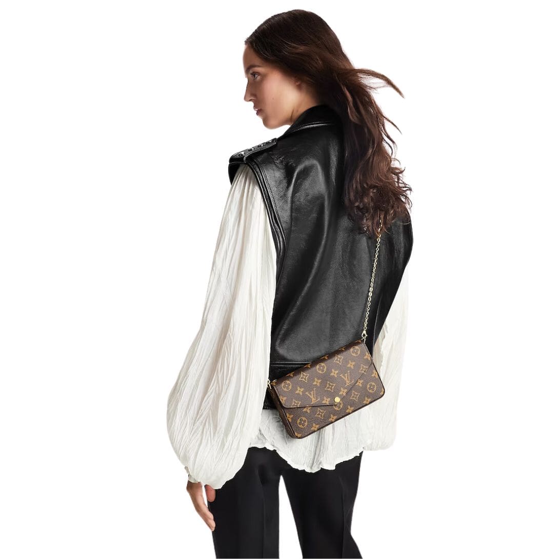 Crafted with meticulous attention to detail, the LOUIS VUITTON FELICIE POCHETTE features Monogram coated canvas and cowhide leather trim, accentuated by gold-color hardware. The leather used in this product adheres to the highest environmental standards, sourced from tanneries audited and certified by the Leather Working Group.