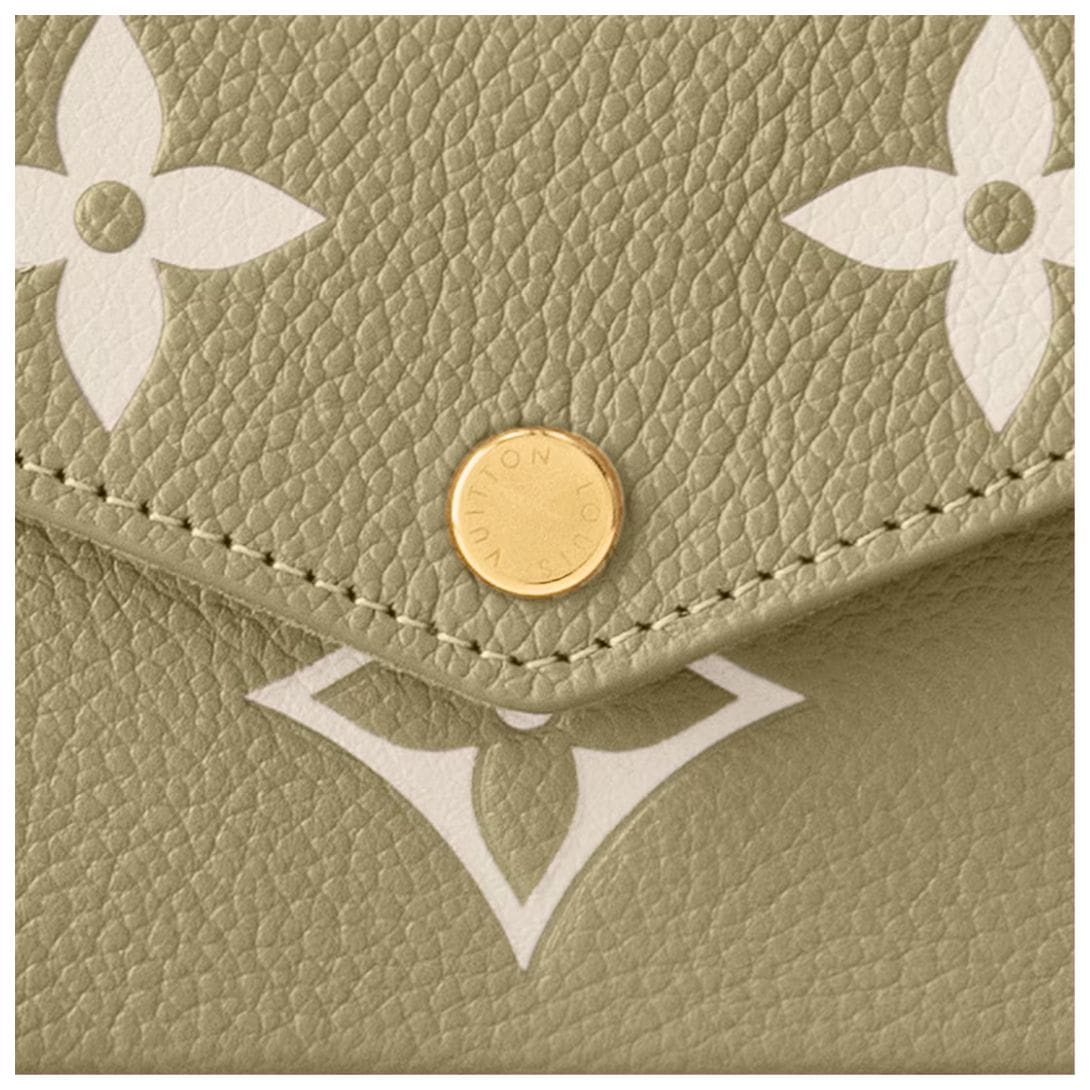 Introducing the LOUIS VUITTON FELICIE POCHETTE, a sophisticated accessory that seamlessly combines style and functionality. Crafted from luxurious Monogram Empreinte embossed cowhide leather in an earthy Khaki/Cream colorway, this exquisite pochette exudes understated elegance and timeless charm.