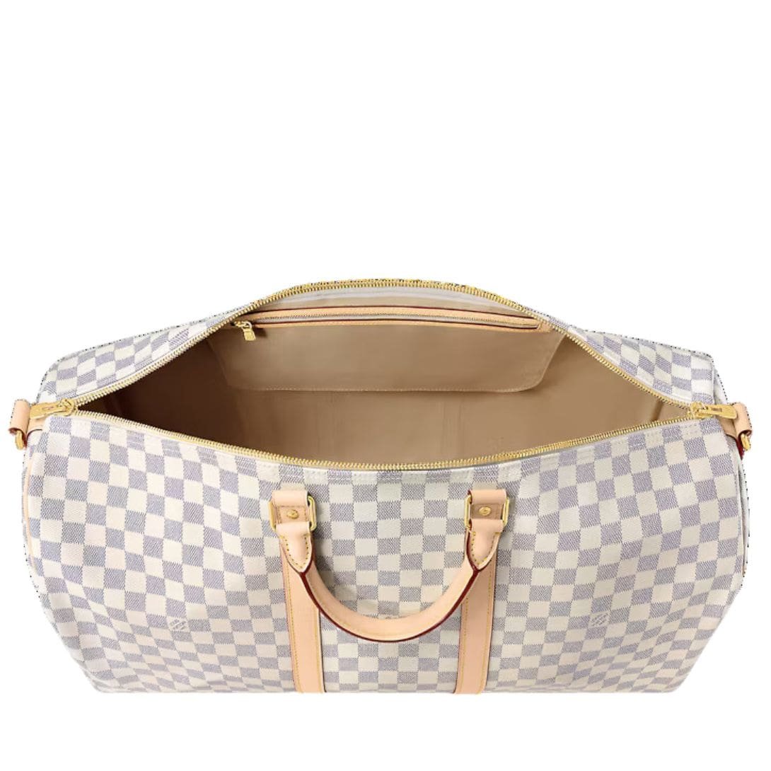 Elevate your travel experience with the LOUIS VUITTON KEEPALBANDL OULIERE 55 in Damier canvas — where timeless elegance meets practical luxury, and sustainability meets wanderlust.