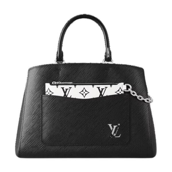 Experience unparalleled versatility with the Marelle Tote MM’s removable and adjustable strap, allowing for hands-free, cross-body wear, while the double Toron top handles offer stylish options for hand or elbow carry. Additionally, the detachable zipped front pocket, adorned with a Monogram-coated canvas pocket and LV see-through logo, adds a touch of modern sophistication to the design.