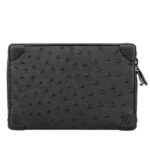 The sleek black hardware accents beautifully harmonize with the rich ostrich leather, while the signature LV initials adorn the exterior, symbolizing unparalleled craftsmanship and luxury. An outside zipped pocket offers convenient access to essentials, while an inside flat pocket ensures effortless organization on the go.