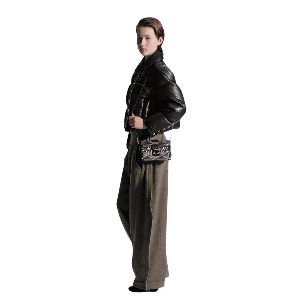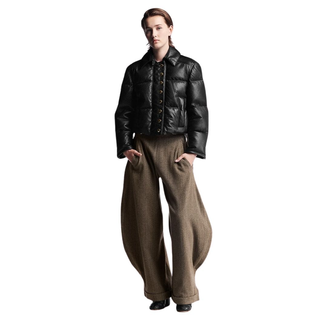 The Louis Vuitton Monogram Leather Padded Boxy Jacket embodies a harmonious blend of structure and volume, elevating it to a statement piece in any wardrobe. Crafted from supple lambskin, this jacket exudes luxury and sophistication, discreetly signed with an embossed nano Monogram, showcasing the brand’s iconic motif in a subtle yet elegant manner.