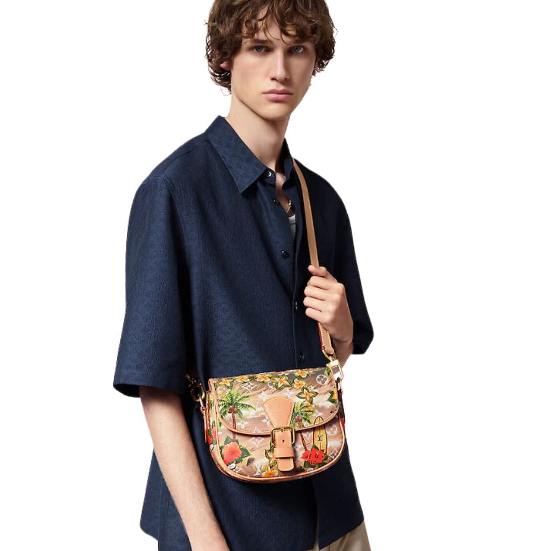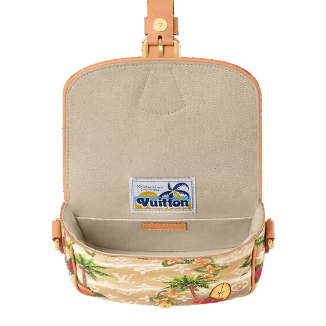 Measuring a compact 7.9 x 6.7 x 2.8 inches, this cross-body bag is perfectly sized for your daily essentials, making it an ideal companion for any outing. The sand-colored Monogram Surfin’ coated canvas is complemented by luxurious cowhide leather trim and a soft textile lining, providing both durability and a touch of elegance. Polished gold-color hardware adds a refined finish, enhancing its sophisticated look.