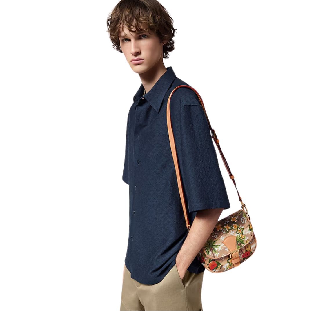 Introducing the LOUIS VUITTON MONTSOURIS MESSENGER PM, the newest gem in the Montsouris collection. This stylish bag showcases Pharrell Williams’ Monogram Surfin’ canvas, adorned with a vibrant and intricate summery print that layers motifs reminiscent of sun-soaked days. The bag’s signature buckle on the front flap is a testament to its heritage and craftsmanship.