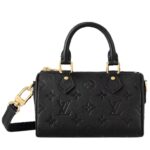 Introducing the LOUIS VUITTON NANO SPEEDY, a petite marvel that captures the essence of timeless elegance and modern sophistication. Crafted from luxurious Monogram Empreinte leather, embossed with the iconic Monogram pattern, this miniature replica of the iconic Speedy bag exudes understated glamour in classic black, complemented by gold-color hardware that adds a touch of luxury to the design.