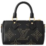 Measuring a petite 6.3 x 3.9 x 3 inches (length x height x width), the LOUIS VUITTON NANO SPEEDY is perfect for those who appreciate elegance in a smaller package. Its sleek black exterior, adorned with the iconic Monogram pattern, is complemented by cowhide leather trim and gold-color hardware, creating a harmonious fusion of luxury and style.