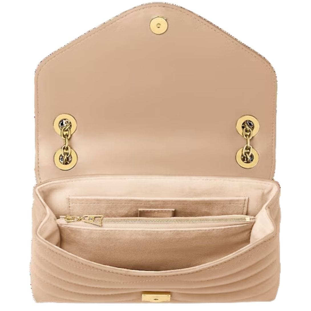 Elevate your style with the LOUIS VUITTON NEW WAVE CHAIN BAG MM , a captivating blend of elegance and functionality. Crafted from supple calf leather in a rich Hazelnut Brown hue, this handbag exudes sophistication with its signature V-shaped quilting and vintage-gold-color hardware, including the iconic LV Initials.