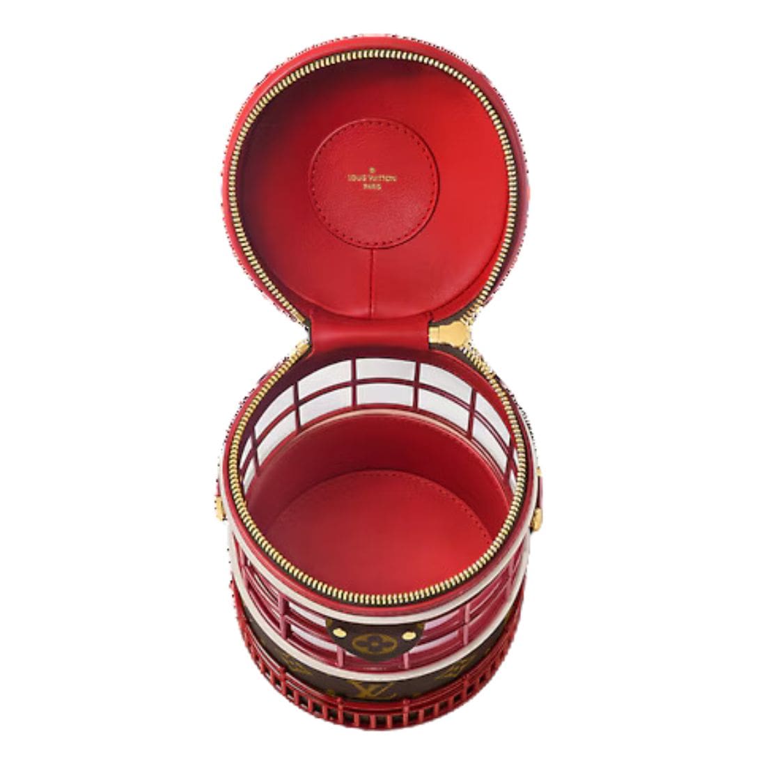 Crafted with meticulous attention to detail, the LOUIS VUITTON PHARE handbag boasts dimensions of 5.5 x 10.4 x 5.5 inches (length x height x width), providing ample space for essentials like a large smartphone, keys, and a compact wallet. Its vibrant red hue exudes sophistication, complementing the iconic Monogram-coated canvas and sumptuous smooth calfskin.