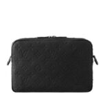 Measuring 9.4 x 6.7 x 2 inches, the LOUIS VUITTON STEAMER MESSENGER exudes understated luxury in classic black, complemented by cowhide-leather trim and sleek black-color hardware. The reinforced corners and signature steamer-style chain evoke the essence of the iconic Steamer bag, adding a touch of heritage charm to the design.
