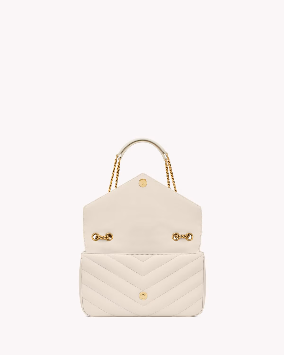 One of the highlights of the LOULOU Medium is its versatile chain-and-leather shoulder strap, which can be doubled for shoulder carry or extended for crossbody wear, making it adaptable for both day and evening looks. The soft yet durable lambskin ensures a luxurious feel while maintaining the bag’s shape and structure over time.