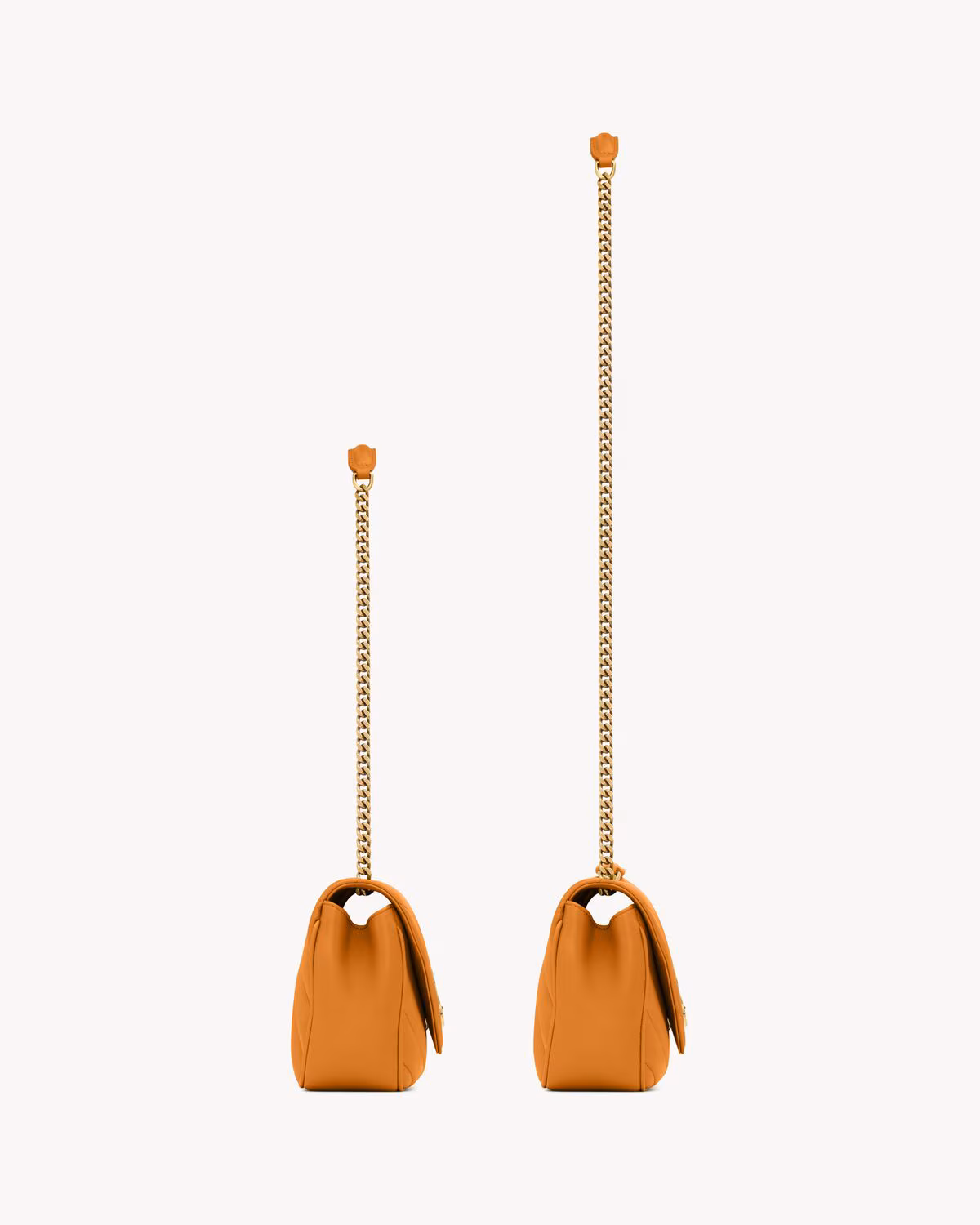 At the center of the flap rests the timeless YSL monogram in antique gold-tone metal — a bold emblem of Saint Laurent’s rich fashion heritage. This same hardware is echoed in the sliding chain strap, which allows you to wear the bag in multiple ways: doubled up as a shoulder bag or extended for crossbody wear, adapting effortlessly to different outfits and occasions.