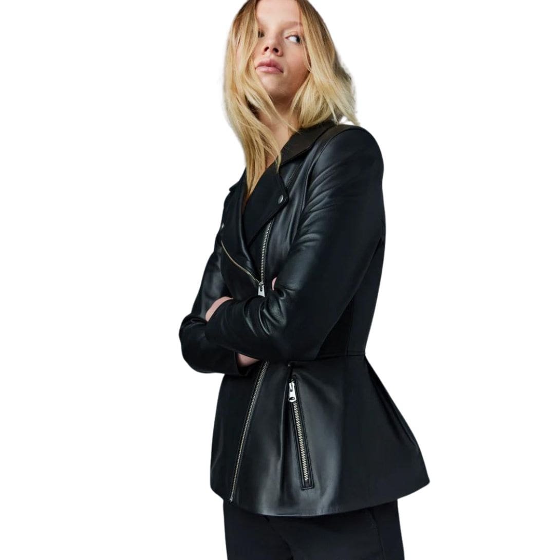 MACKAGE DAY LEATHER BIKER JACKET WITH PEPLUM