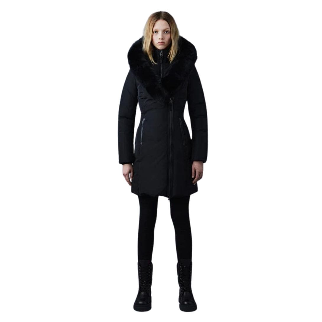 Introducing Mackage Kay Down Coat with Blue Fox Fur Signature Mackage Collar, a sophisticated three-quarter fitted down coat tailored specifically for women who prioritize both style and functionality in their winter wardrobe. Crafted with meticulous attention to detail and featuring luxurious accents, this coat seamlessly combines warmth, comfort, and fashion-forward design.