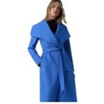 The Mackage Mai-Cn Double-Face Wool Wrap Coat, expertly crafted from luxurious, soft double-face wool. Designed with a fluid drape, it provides a relaxed fit and an unlined layer, ideal for mild weather. The elegant waterfall collar and leather welting on the waist pockets and belt loops add a touch of sophistication. Key features include: