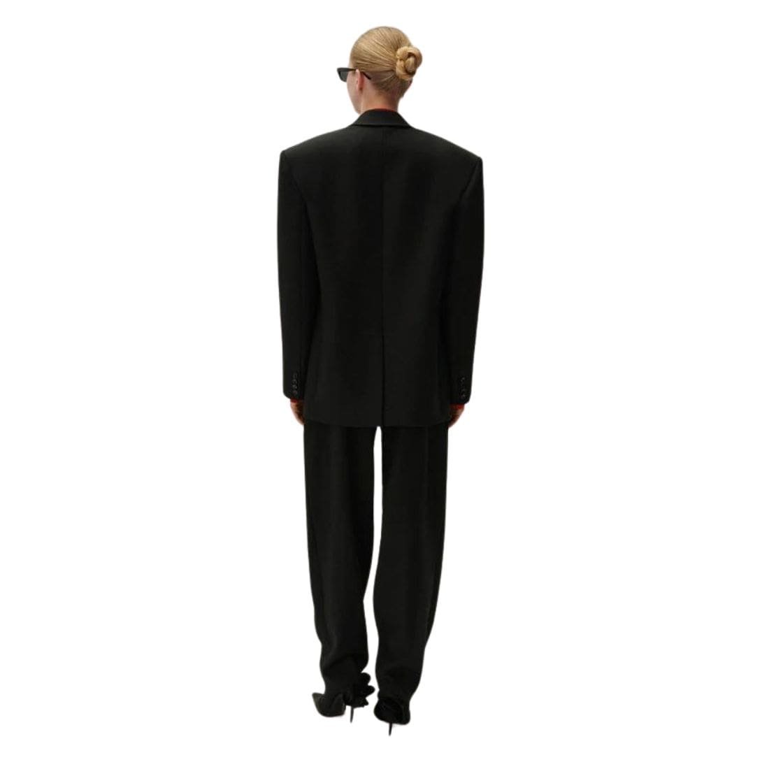 Magda Butrym Classic Oversized Wool Blazer In Black. signature oversized blazer is a quintessential piece that seamlessly blends modern chic with timeless elegance. This season, the iconic blazer is available in luxurious black wool, offering a versatile and sophisticated addition to any wardrobe.