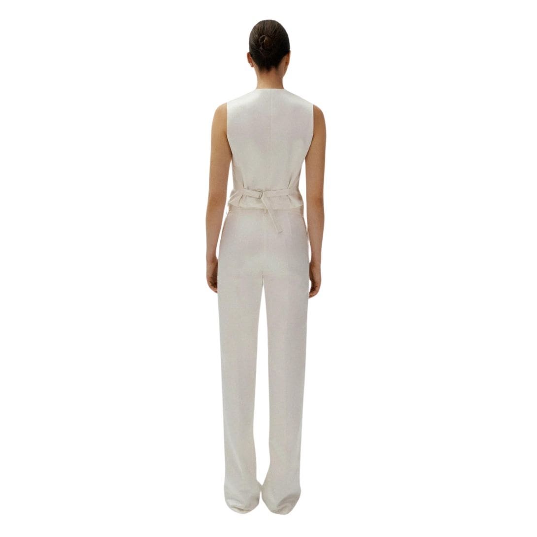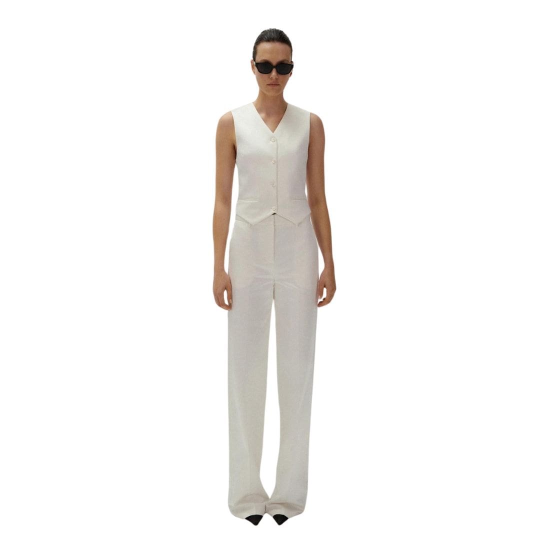 The MAGDA BUTRYM CLASSIC WAISTCOAT IN CREAM epitomizes timeless elegance in the realm of tailoring, and Magda Butrym’s rendition stands as a testament to this enduring style. Crafted with meticulous attention to detail, this vest embodies the essence of traditional craftsmanship while seamlessly integrating modern elements for a contemporary twist.