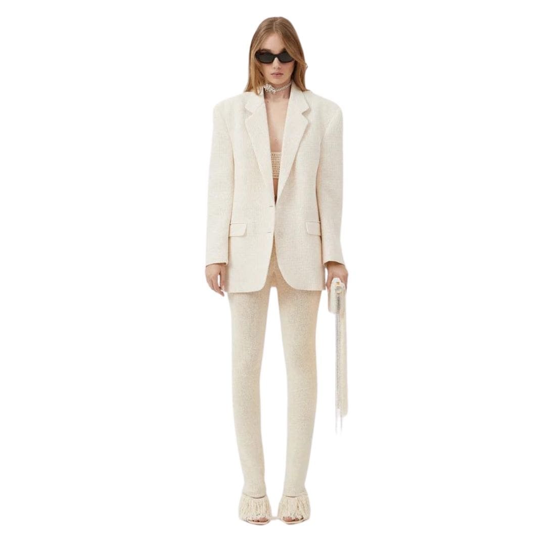 The Magda Butrym Crochet Pants in cream. embody understated elegance and timeless sophistication, offering a chic and versatile addition to any wardrobe. Crafted with meticulous attention to detail, these pants showcase the brand’s commitment to quality craftsmanship and modern design.