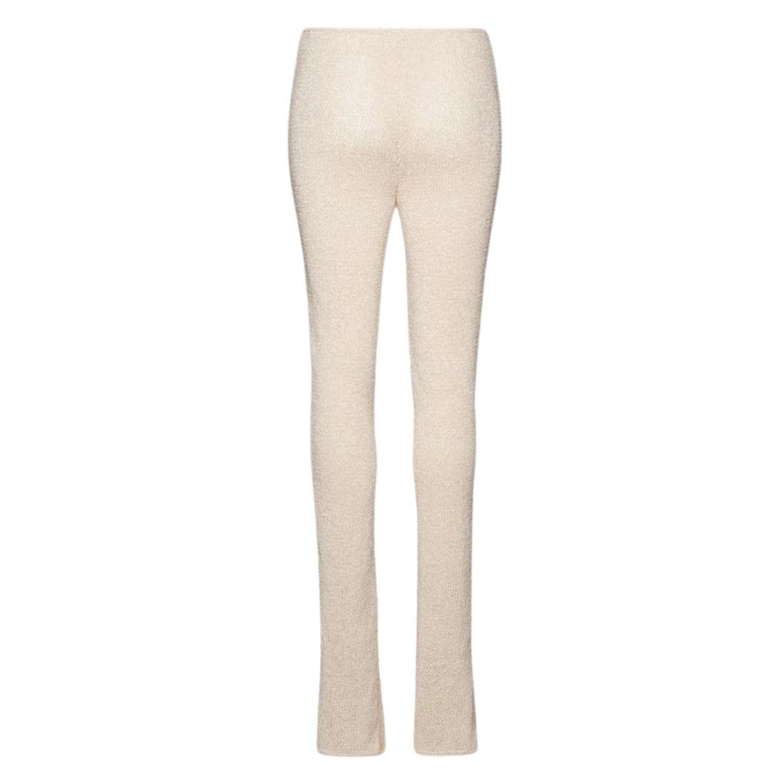 In summary, the Magda Butrym Crochet Pants in Cream are a chic and sophisticated choice for any occasion. With their high waist, side zip, slim fit, slightly flared leg opening, and natural cream colour, these pants offer a modern take on classic elegance. Crafted with impeccable attention to detail, they are sure to become a go-to piece in your wardrobe for years to come.