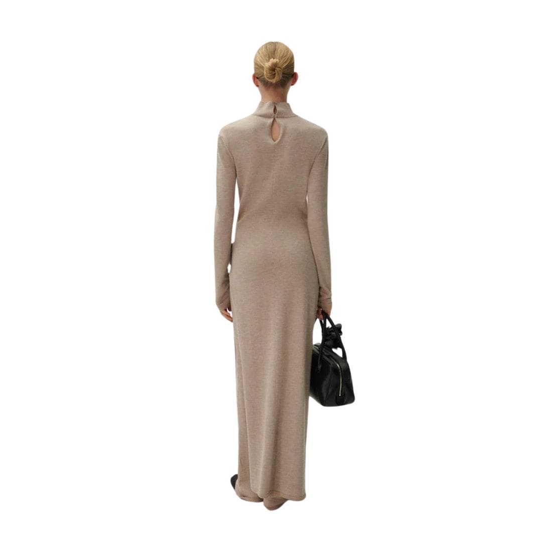 MAGDA BUTRYM HIGH NECK KNIT MAXI DRESS IN BEIGE