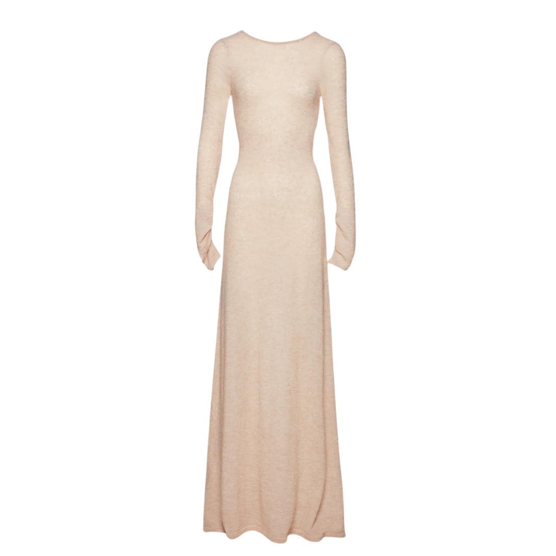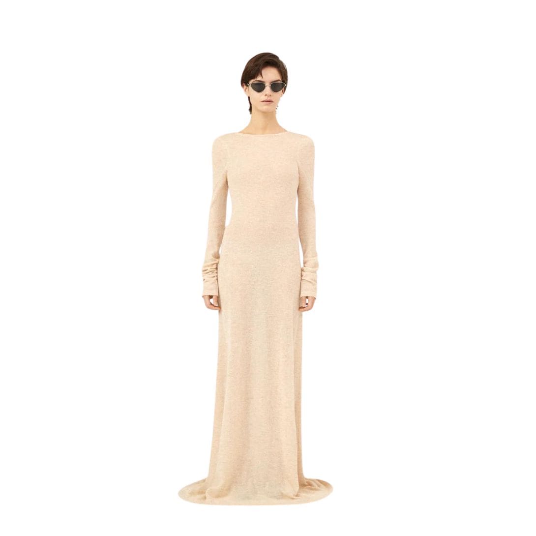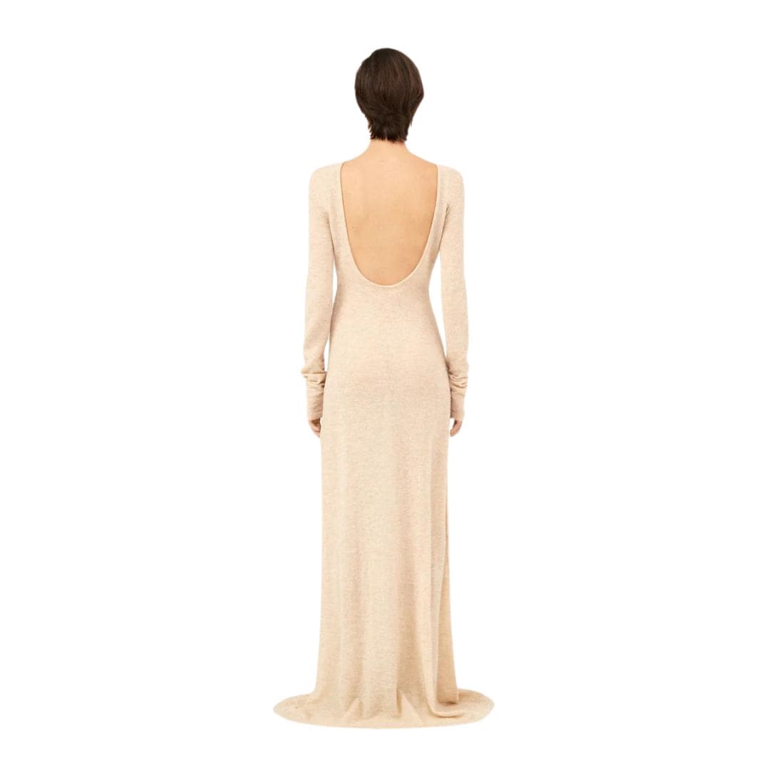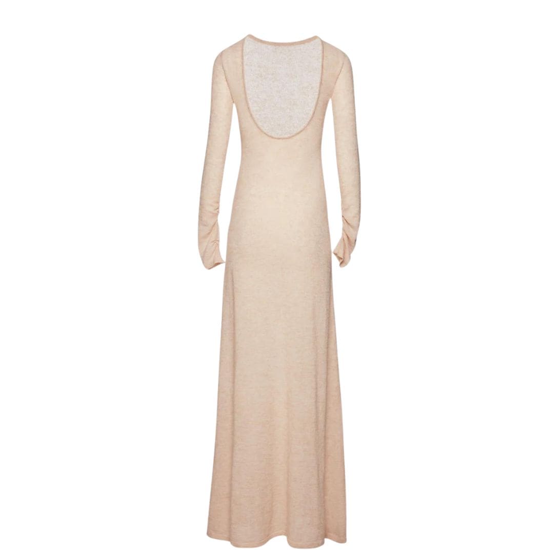 Home MAGDA BUTRYM SHORTS AND SKIRTS MAGDA BUTRYM KNIT BACKLESS MAXI DRESS IN BEIGE
