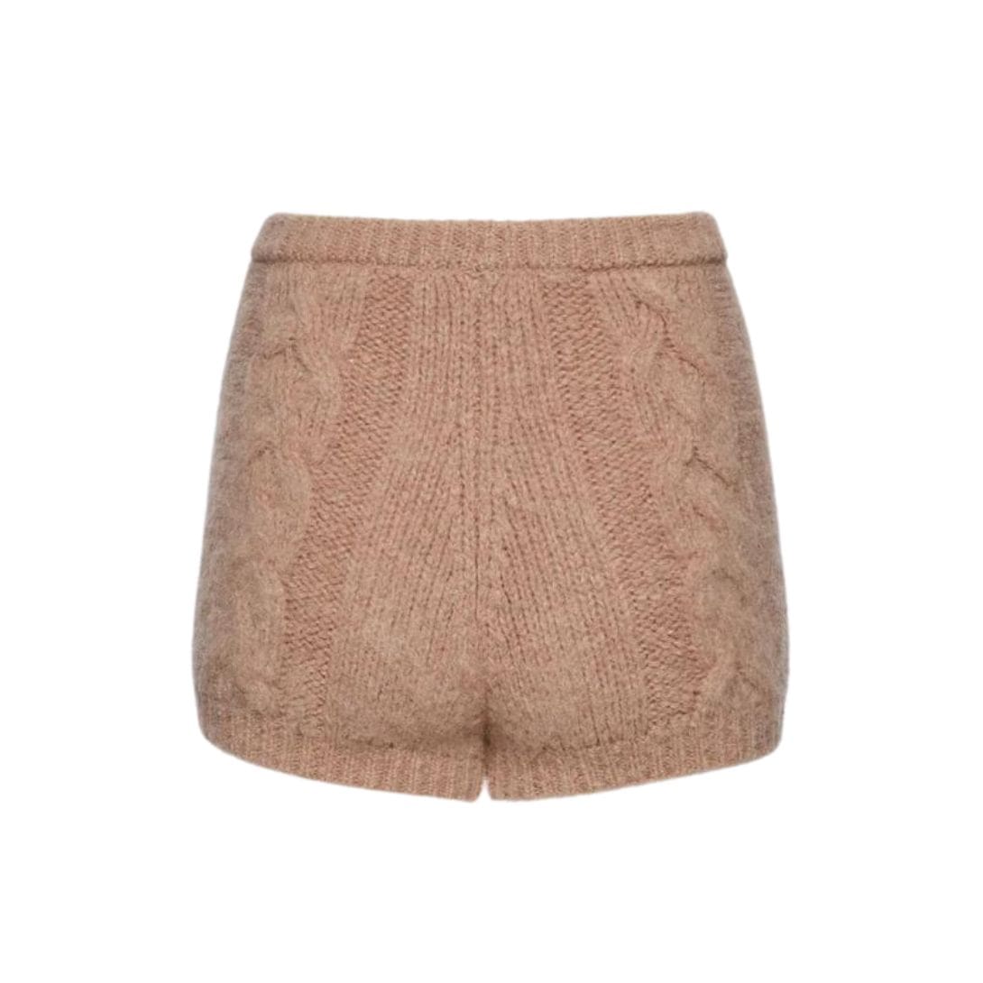 Home MAGDA BUTRYM SHORTS AND SKIRTS MAGDA BUTRYM MOHAIR CABLE KNIT MINI SHORTS IN CARAMEL