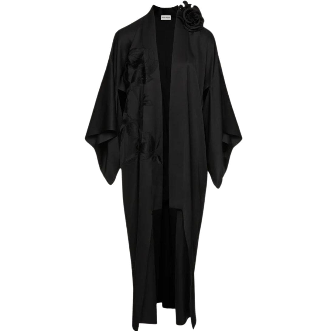MAGDA BUTRYM SILK EMBROIDERED KIMONO IN BLACK