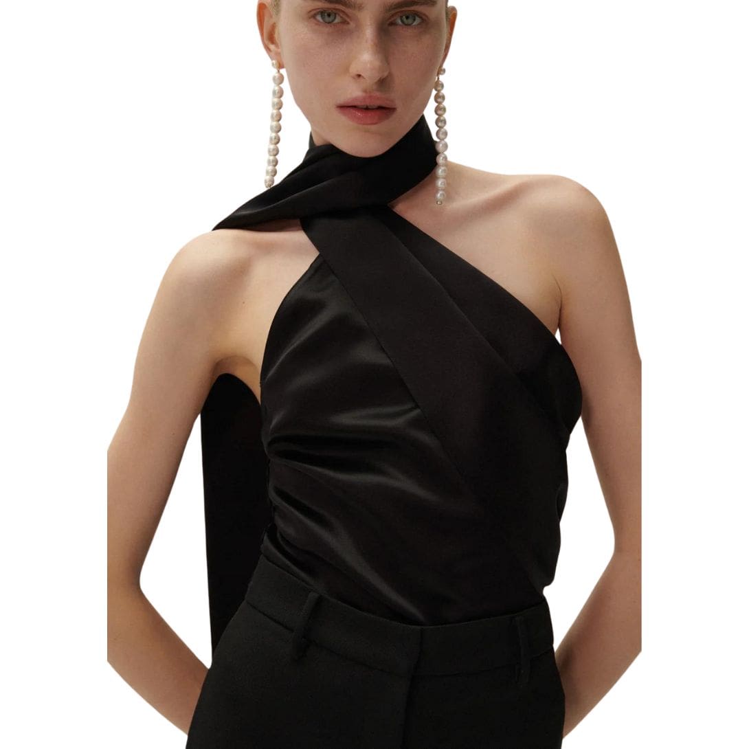Be the first to review “MAGDA BUTRYM SILK WRAP NECK TOP IN BLACK” Cancel reply