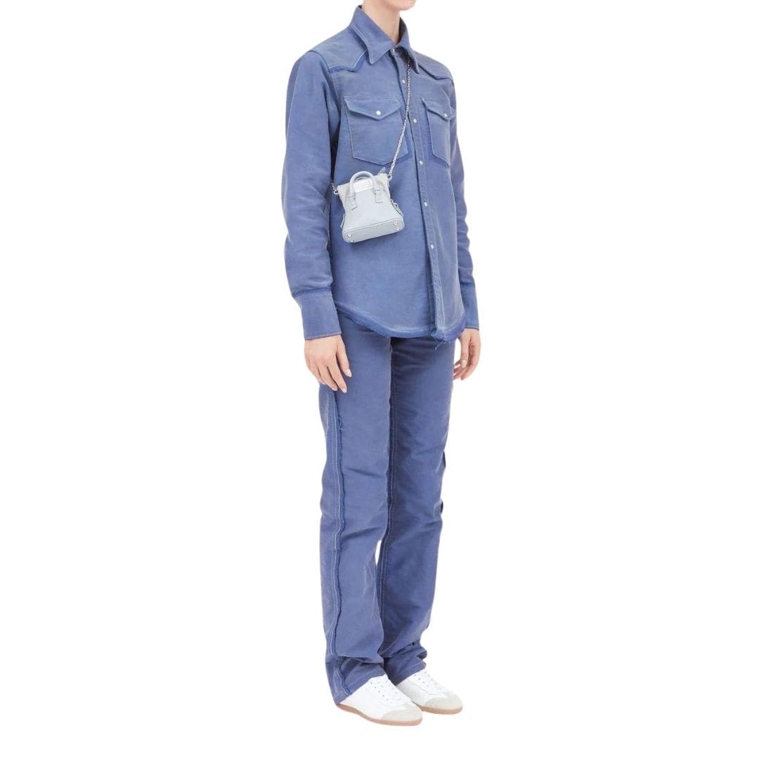 Crafted with precision in Italy, Maison Margiela 5AC Classique Baby top-handle bag, a charming addition to your accessory collection. The bag features a refreshing breeze blue hue, exuding sophistication and style.