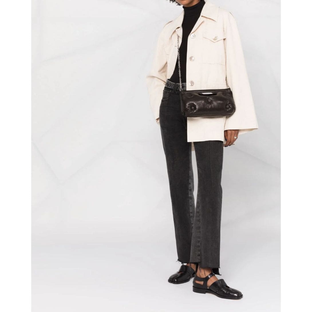Unveiled on Maison Margiela’s SS18 runway, the iconic Maison Margiela Glam Slam red carpet crossbody bag has since solidified its place as a staple for the esteemed French fashion house. Returning for AW21, it comes with a more compact and versatile design, perfect for everyday wear. Crafted in Italy, this iteration features a sleek black leather exterior adorned with the brand’s signature numbers motif, adding a touch of sophistication. The quilted detailing elevates its aesthetic appeal, while a concealed magnetic fastening ensures secure closure.