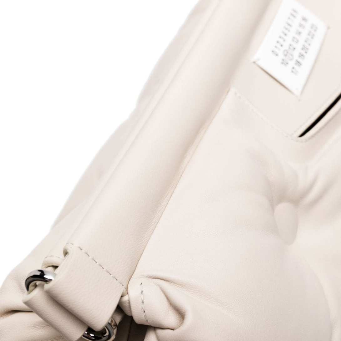 Handcrafted in Italy, the Maison Margiela large Glam Slam quilted shoulder bag epitomizes luxury and sophistication. Its pristine white exterior is accentuated by a prominent leather logo patch adorning the front, while a magnetic fastening ensures secure closure. The bag offers versatility with its adjustable and detachable shoulder strap, while the main compartment is supplemented by an internal zip-fastening pocket for added organization.