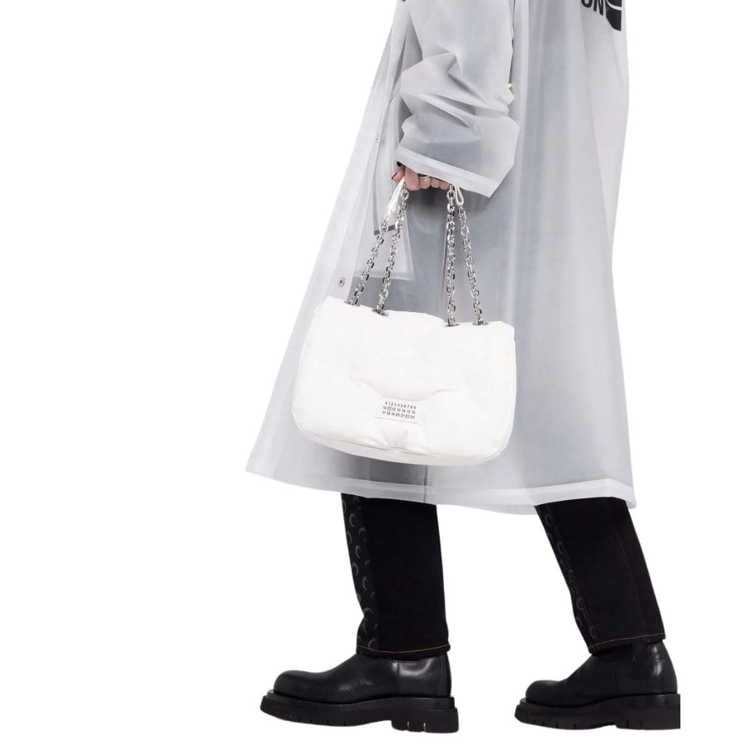 Crafted with meticulous attention to detail in Italy, the Maison Margiela medium Glam Slam Flap shoulder bag epitomizes effortless glamour and sophistication. Inspired by the timeless Matelassé quilting technique from Marseille, France, this bag features a luxurious white leather construction with a quilted finish.