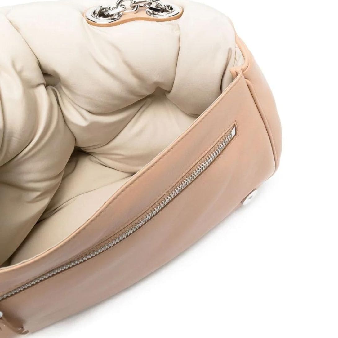 Indulge in understated luxury with the Maison Margiela Medium Glam Slam Flap Shoulder Bag. Made in Italy, this exquisite piece features a captivating crepe-pink hue that adds a subtle pop of color to any ensemble. The quilted design, adorned with the brand’s signature numbers motif, exudes sophistication and elegance.