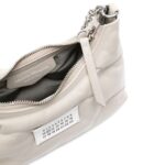 Maison Margiela micro Glam Slam shoulder bag Crafted in Italy, features tufted quilting that imparts a soft, pillowy appearance to its pieces. This shoulder bag, a part of the collection, is meticulously crafted from white leather, showcasing an elegant arched silhouette and adorned with the iconic numbers motif appliquéd at the front.