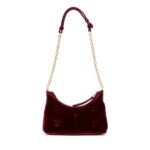 In a rich bordeaux red hue, this bag features a plush velvet effect exterior, exuding elegance and opulence. Tonal stitching and gold-tone hardware add to its refined appeal, while Maison Margiela’s signature numbers motif subtly adorns the design, showcasing its heritage and prestige. Fabric-covered buttons further enhance its luxurious aesthetic.