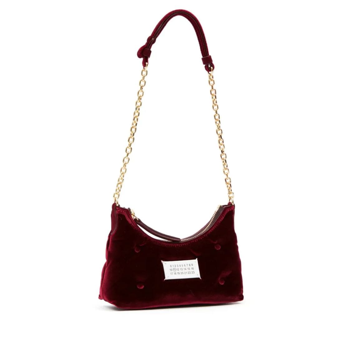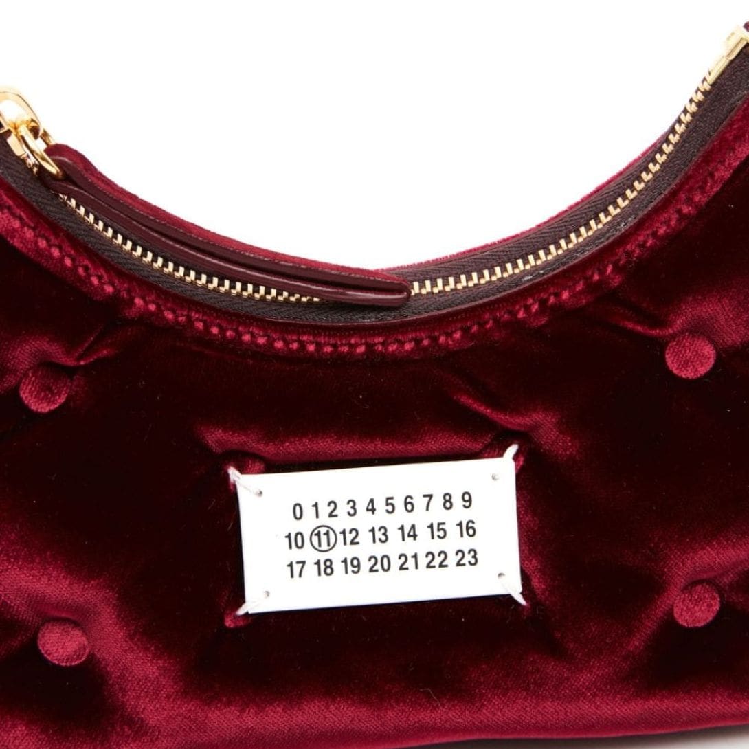 Introducing the Micro Glam Slam Velvet Shoulder Bag: Indulge in the exquisite charm of Maison Margiela Micro Glam Slam Velvet Shoulder Bag, a captivating accessory meticulously crafted in Italy to elevate your ensemble with sophistication and style.