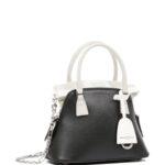 Crafted with precision in Italy, this maison margiela mini 5AC Classique Leather tote bag boasts a striking black and white color palette, crafted from luxurious calf leather with a grained texture. Its paneled design exudes sophistication, complemented by Maison Margiela’s signature four-stitch logo and logo tag, along with the iconic numbers motif for added allure.
