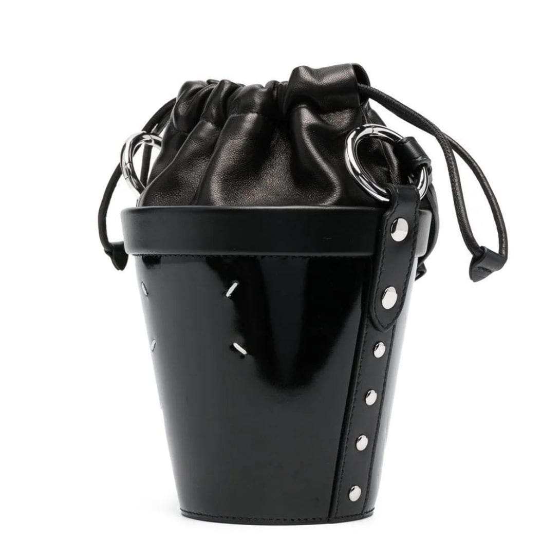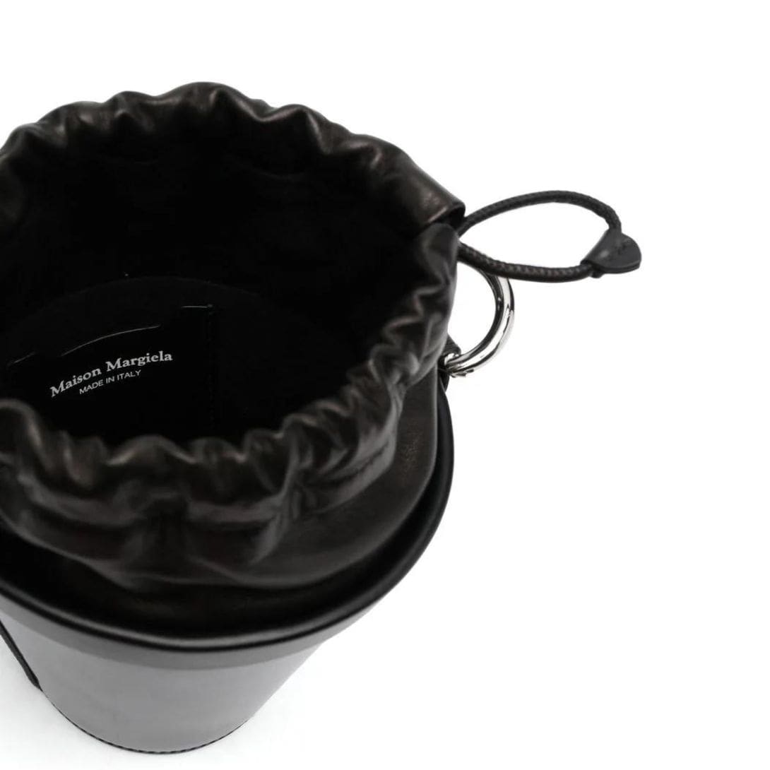 Elevate your accessory game with the Maison Margiela Mini Fire Leather Bucket Bag, a timeless piece that exudes sophistication and style.
