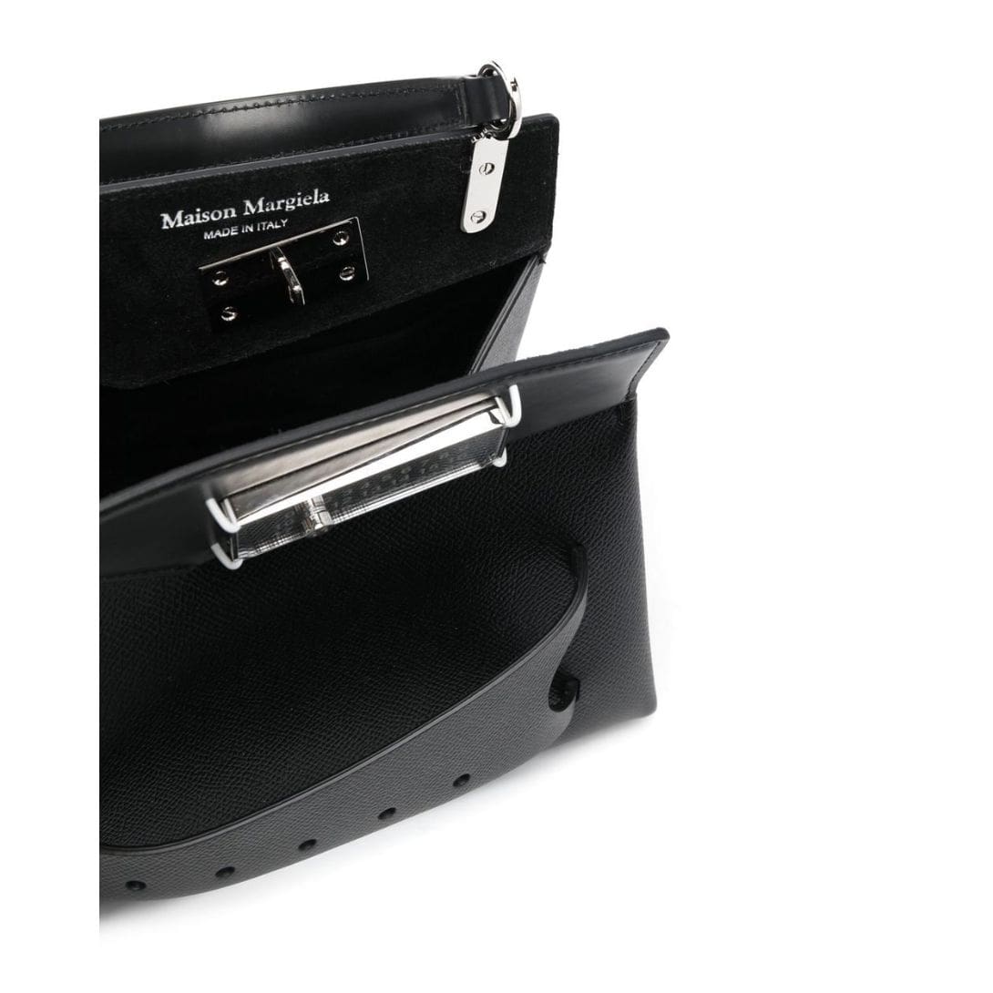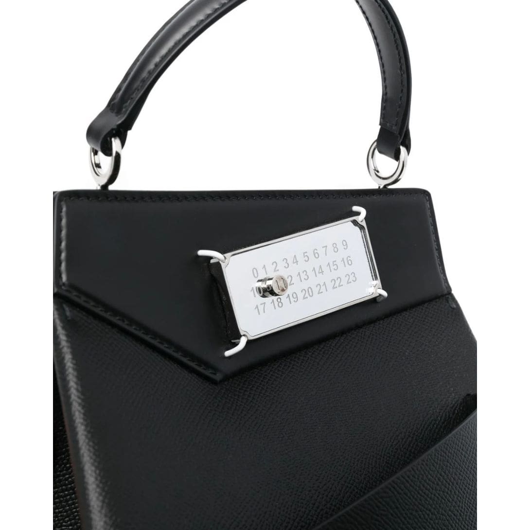 A timeless emblem of Maison Margiela snatched tote bag undergoes a seasonal transformation with the unveiling of this contemporary mini-sized version for AW22. Meticulously crafted in Italy, it features luxurious black calf leather adorned with the brand’s iconic numbers motif. The design is accentuated by a singular circular top handle, offering a distinctive touch. Enhancing its versatility, the bag comes with an adjustable detachable shoulder strap for added convenience. Secured by a clasp fastening, this accessory seamlessly combines functionality with elegance. Its interior, lined with polyester, ensures both durability and refinement.