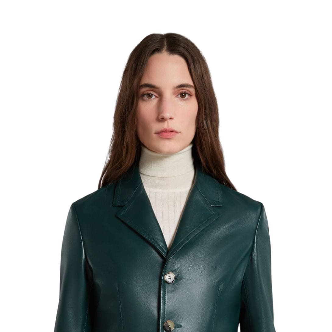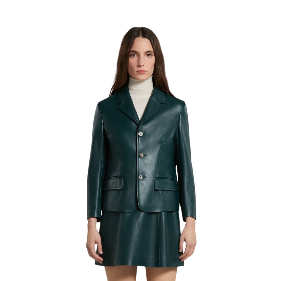 Overall, the Marni Green Leather Jacket is a perfect blend of modern design and classic leather craftsmanship, making it a valuable addition to any fashion-forward wardrobe. Its timeless appeal ensures that it will remain a favorite piece for years to come.