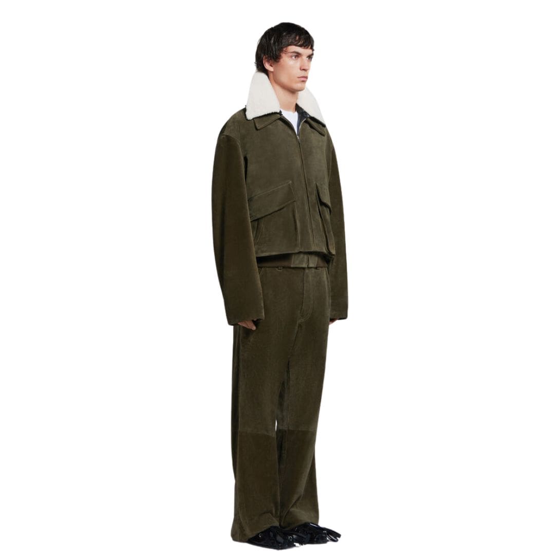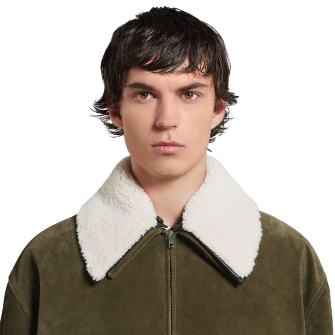 Home MEN JACKETS BRANDS MARNI MEN JACKETS MARNI GREEN SUEDE JACKET WITH SHEARLING COLLAR